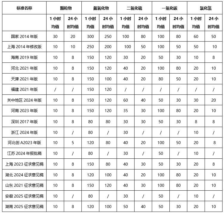 目前,各地區(qū)對(duì)氮氧化物排放標(biāo)準(zhǔn)集中控制在80~250mg/m3,深圳、浙江、江蘇、安徽四地均為80mg/m3。